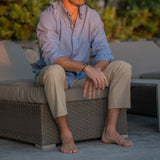 Nuestra tela está hecha de una mezcla de dos fibras naturales. Primero, lino grueso (gramaje 300 vs 140 que es el clásico). Segundo, algodón, a modo de reforzar el lino.